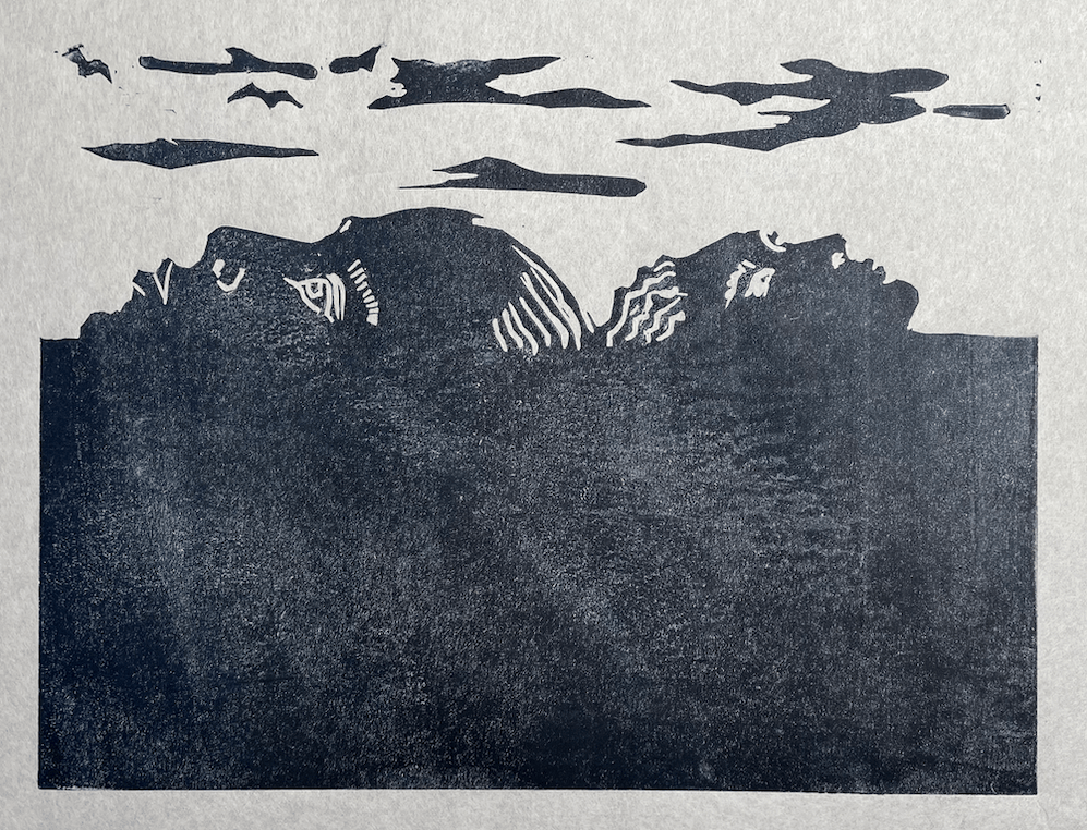 Sleeping Senators, linoprint on Japanese paper, 2020